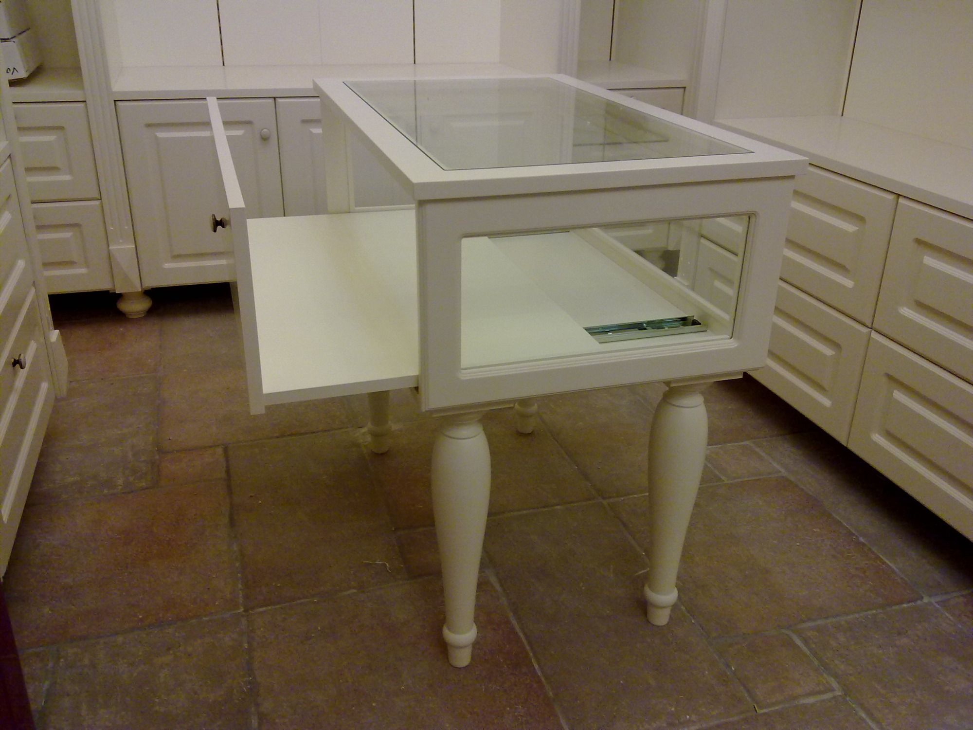 Frische und moderne Empfangstheke in einem, stilvollen und sauberen Design. In weiß glänzend.